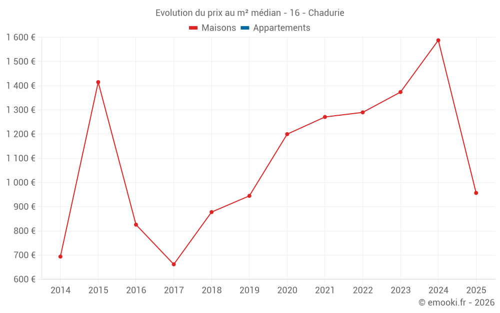 Carte des prix de l'immobilier dans la commune de Chadurie, choississez une section pour voir les transactions par parcelle.