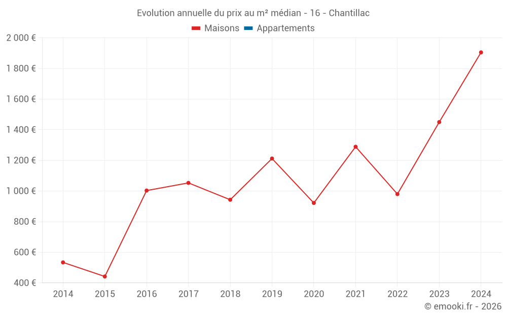 Evolution du prix au m² médian des maisons