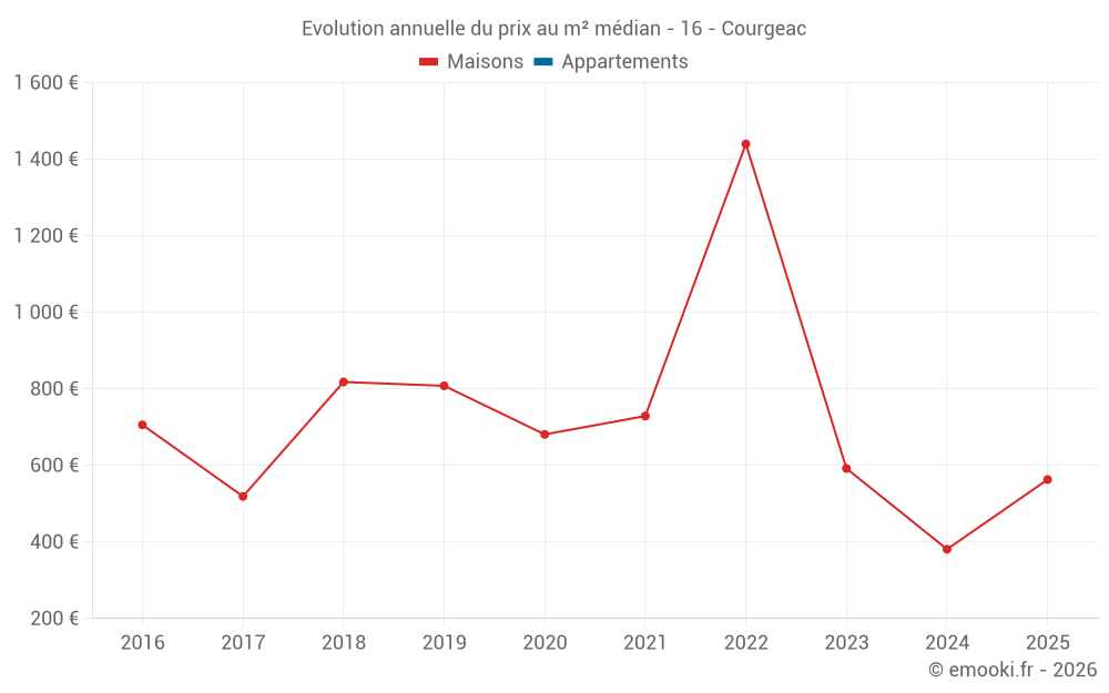 Evolution du prix au m² médian des maisons