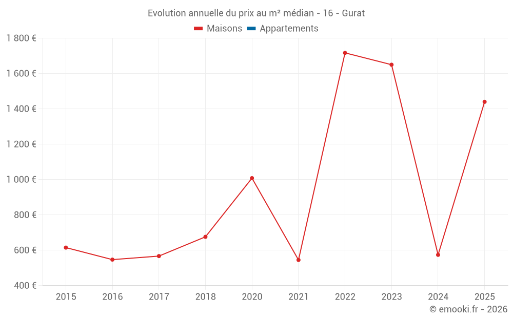 Carte des prix de l'immobilier dans la commune de Gurat, choississez une section pour voir les transactions par parcelle.