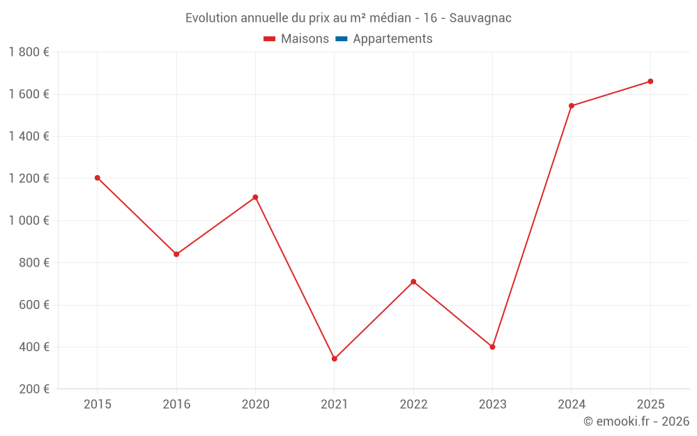 Evolution du prix au m² médian des maisons