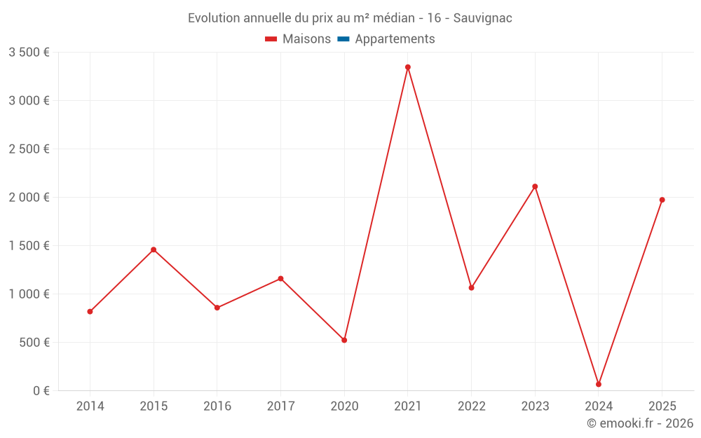 Evolution du prix au m² médian des maisons