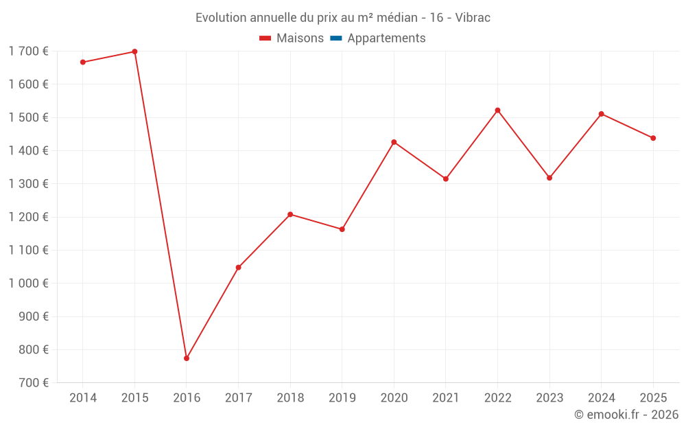Evolution du prix au m² médian des maisons