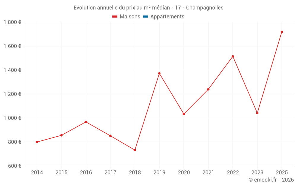 Evolution du prix au m² médian des maisons