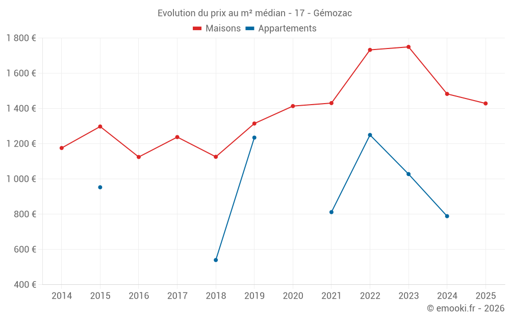 Carte des prix de l'immobilier dans la commune de Gémozac, choississez une section pour voir les transactions par parcelle.