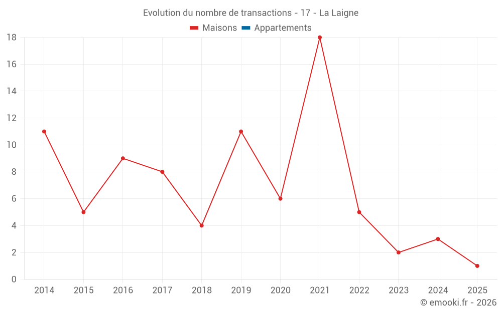 Carte des prix de l'immobilier dans la commune de la Laigne, choississez une section pour voir les transactions par parcelle.