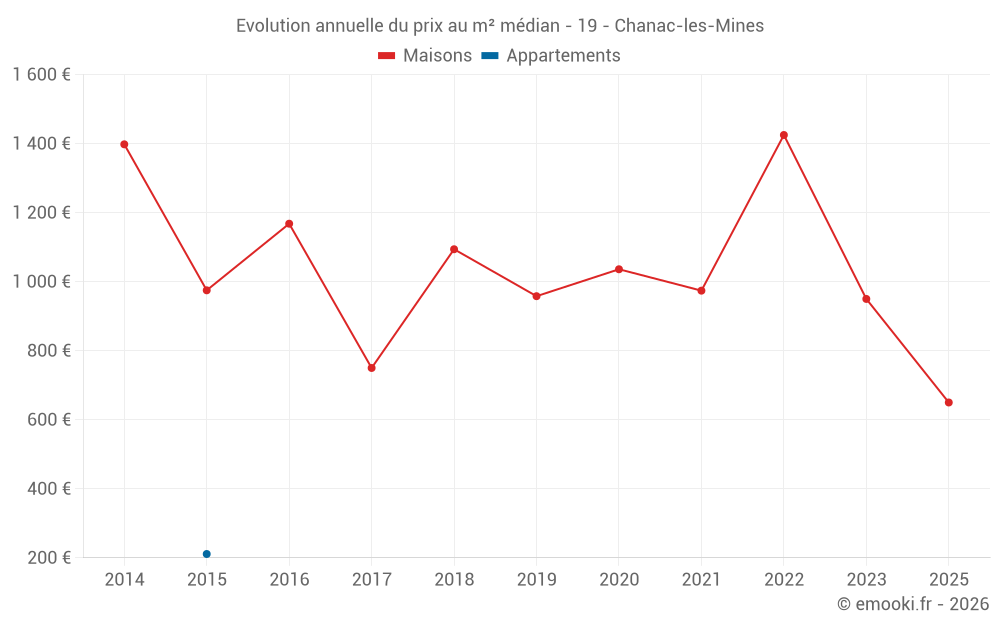 Evolution du prix au m² médian des maisons
