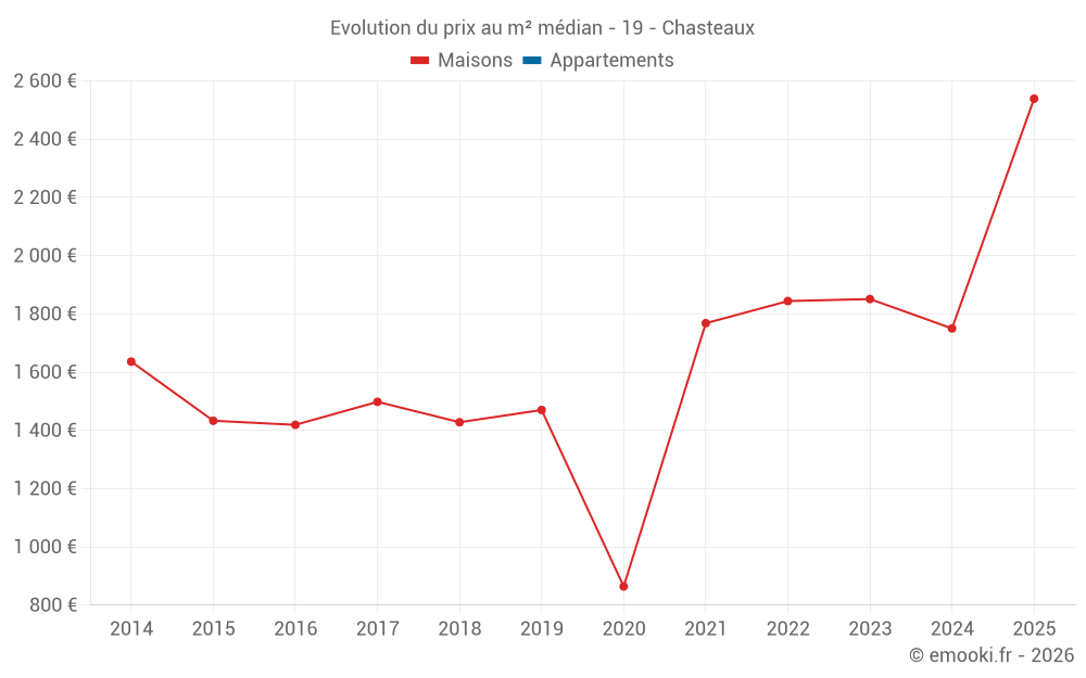 Carte des prix de l'immobilier dans la commune de Chasteaux, choississez une section pour voir les transactions par parcelle.