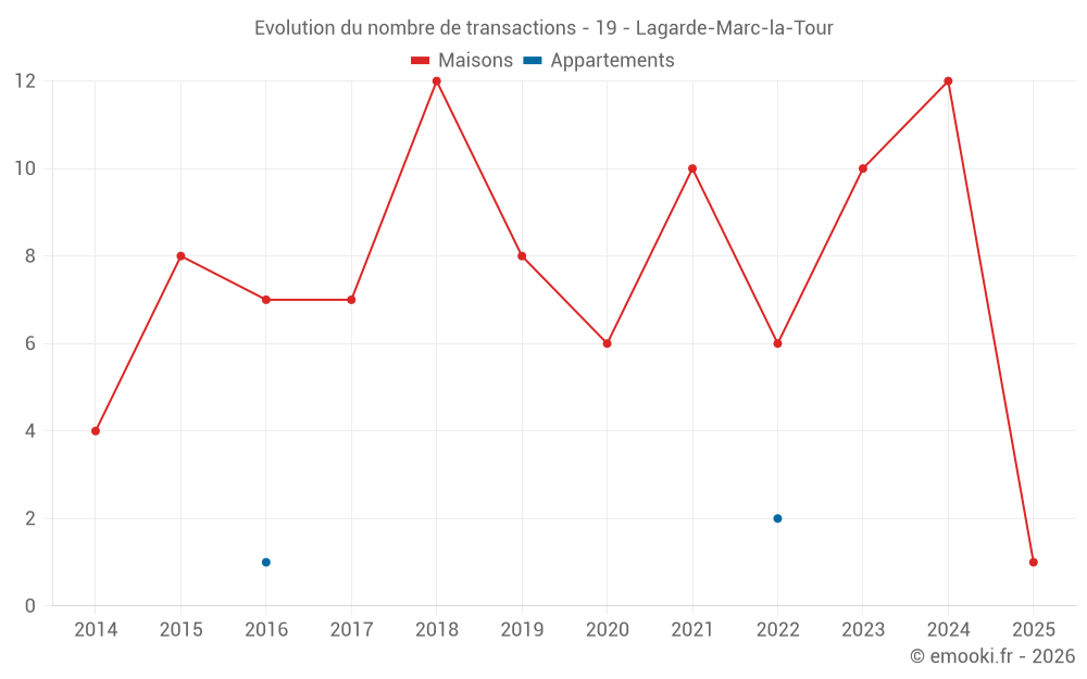 Carte des prix de l'immobilier dans la commune de Lagarde-Marc-la-Tour, choississez une section pour voir les transactions par parcelle.