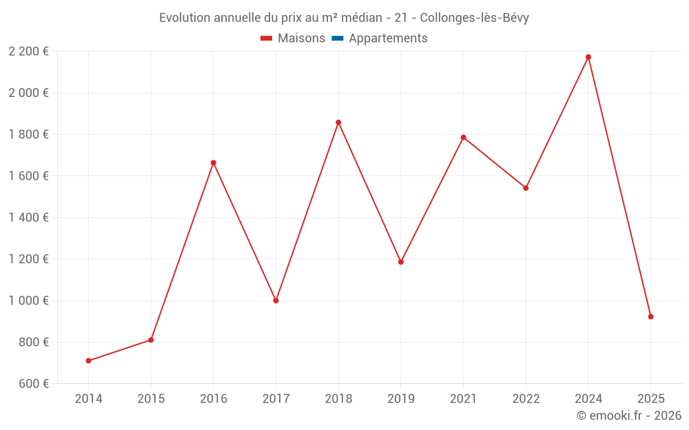 Evolution du prix au m² médian des maisons