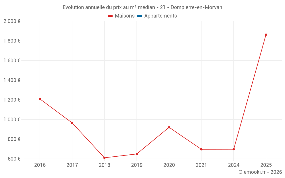 Attention, dernière année incomplète. Projections effectuées sur la base des proportions entre semestres de l'année précédente au niveau départemental/national et par catégorie de bien.