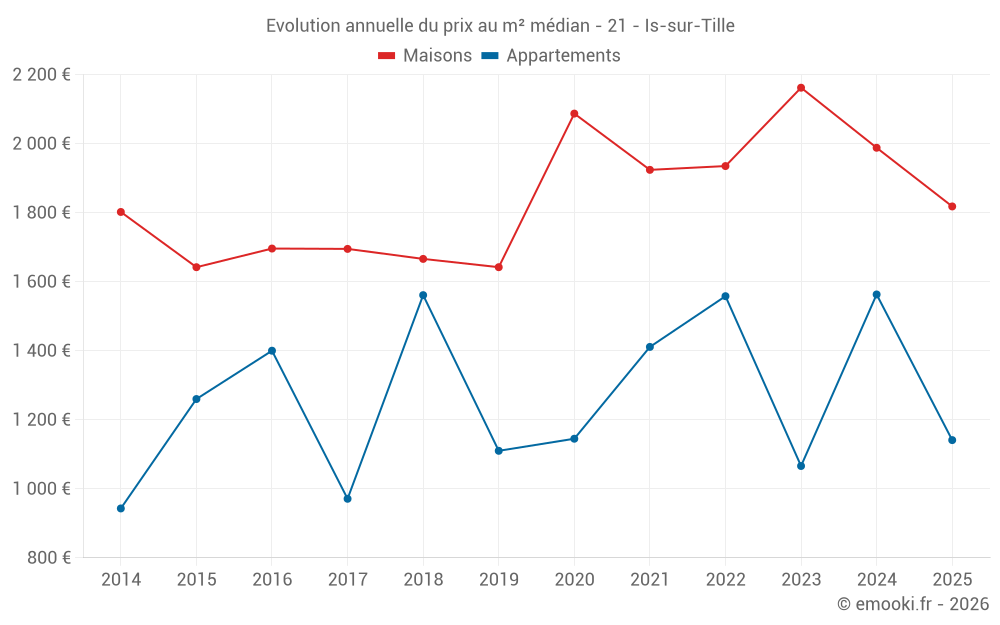 Le prix médian sur les 33 transactions de maisons des 12 derniers mois dans la commune d'Is-sur-Tille était de 1 944 € par mètre carré pour une valeur foncière médiane de 193 570 €. Sur cette période 60% des transactions se sont situées entre 1 314 et 2 283 € par mètre carré (du 2ème au 8ème déciles).