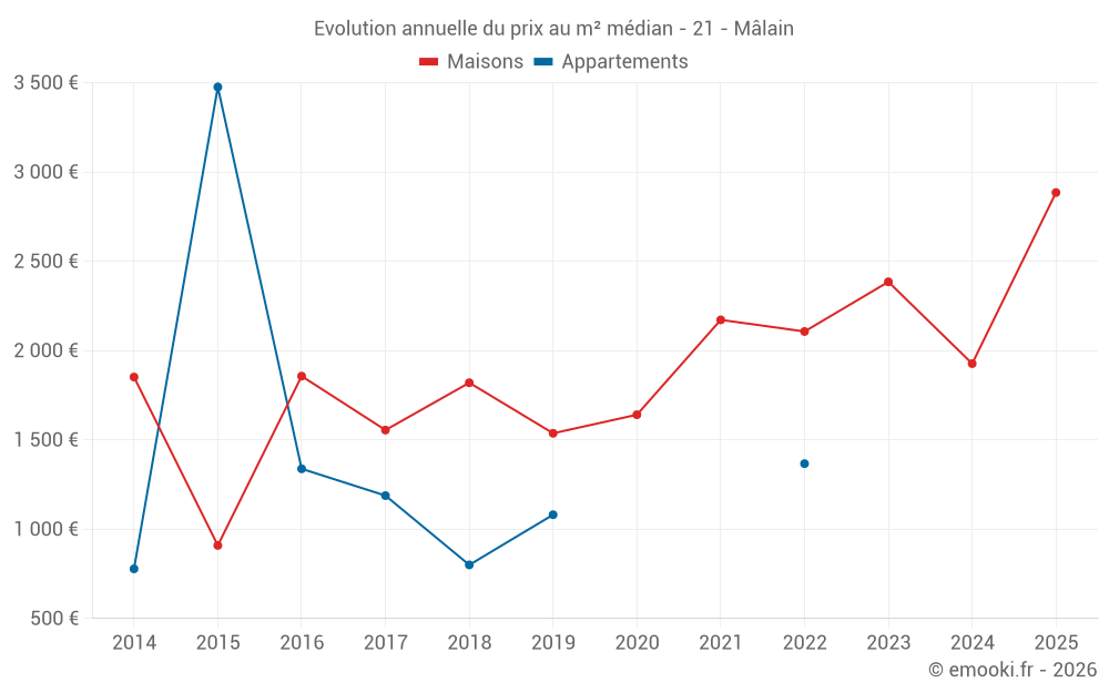 Prix médian sur les 21 transactions des 36 derniers mois.