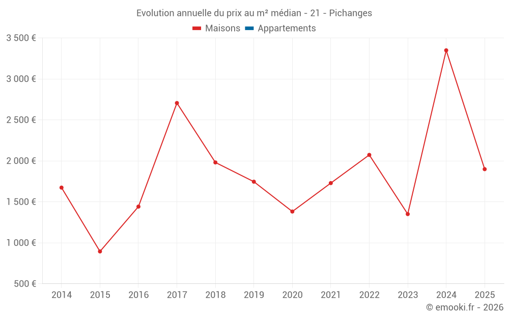 Carte des prix de l'immobilier dans la commune de Pichanges, choississez une section pour voir les transactions par parcelle.