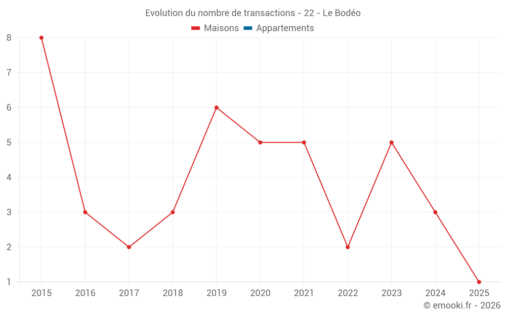 Carte des prix de l'immobilier dans la commune du Bodéo, choississez une section pour voir les transactions par parcelle.