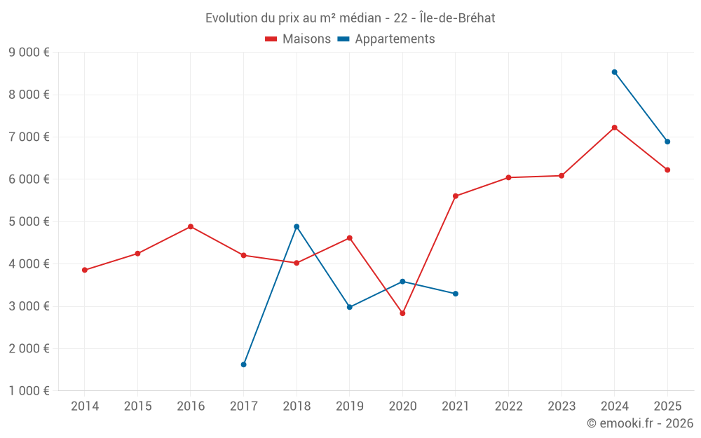 Carte des prix de l'immobilier dans la commune d'Île-de-Bréhat, choississez une section pour voir les transactions par parcelle.
