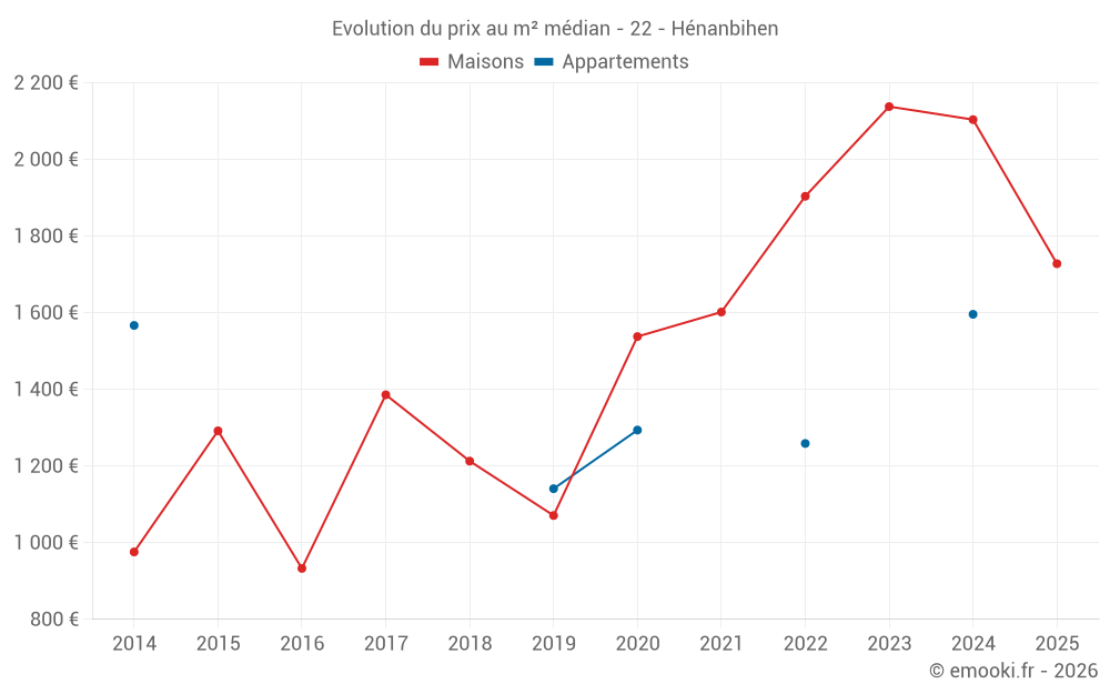 Carte des prix de l'immobilier dans la commune d'Hénanbihen, choississez une section pour voir les transactions par parcelle.