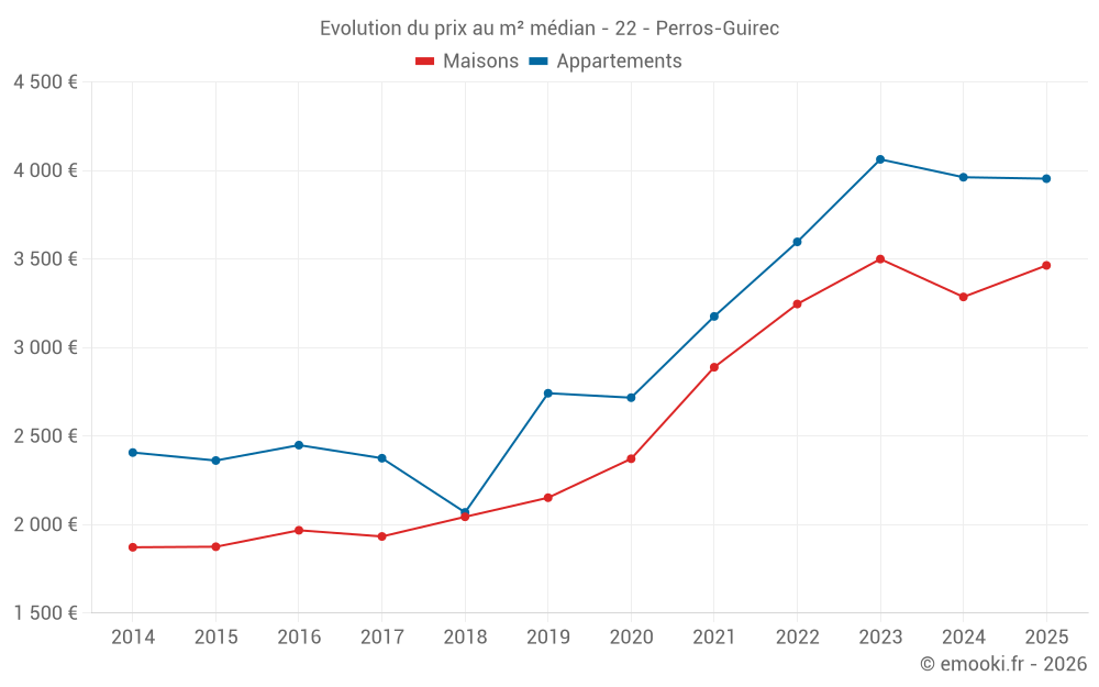 Carte des prix de l'immobilier dans la commune de Perros-Guirec, choississez une section pour voir les transactions par parcelle.