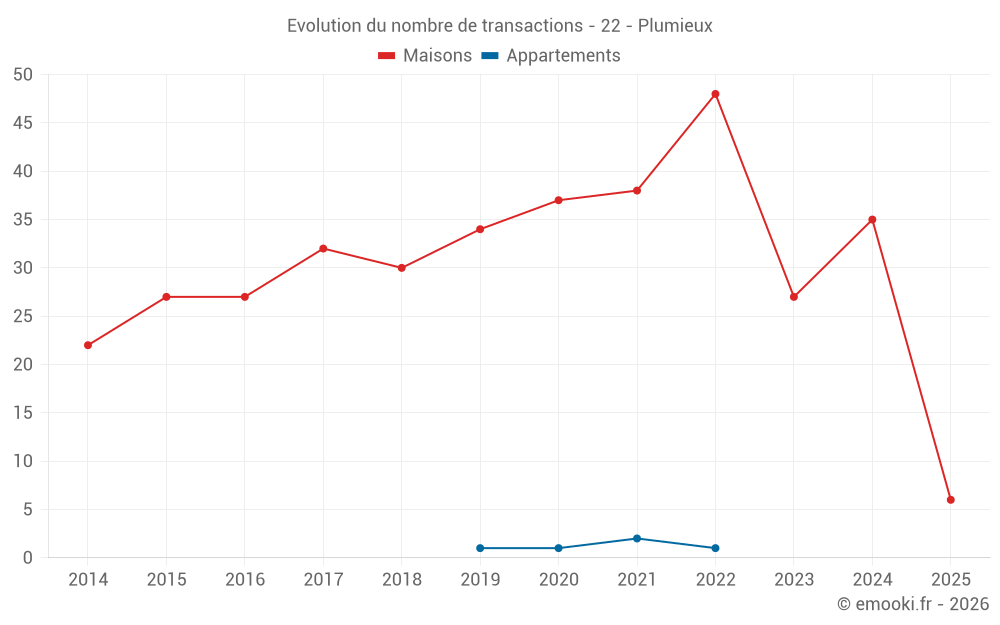 Attention, dernière année incomplète. Projections effectuées sur la base des proportions entre semestres de l'année précédente au niveau départemental/national et par catégorie de bien.