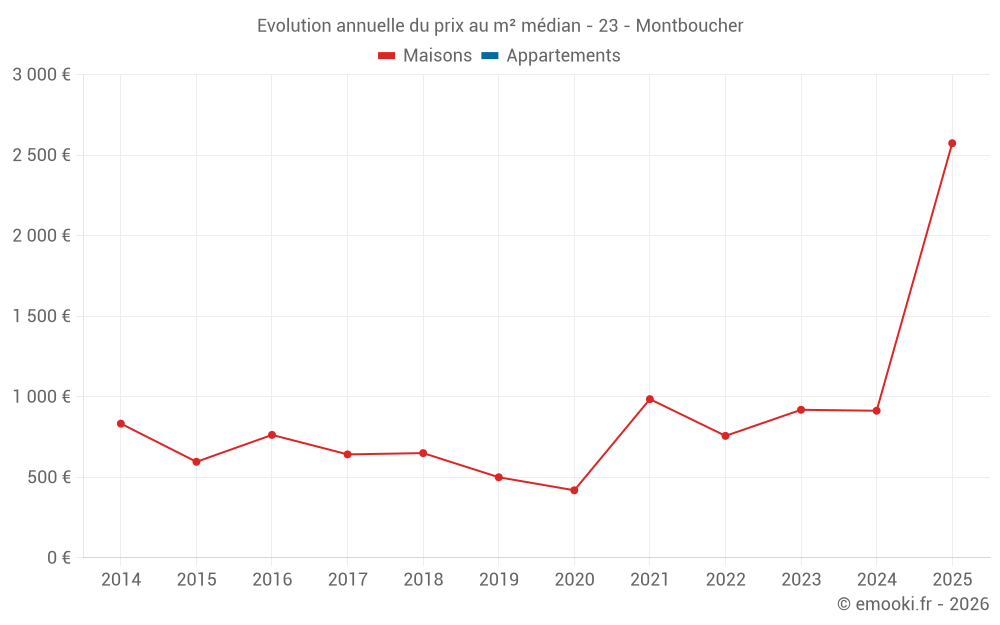 Evolution du prix au m² médian des maisons