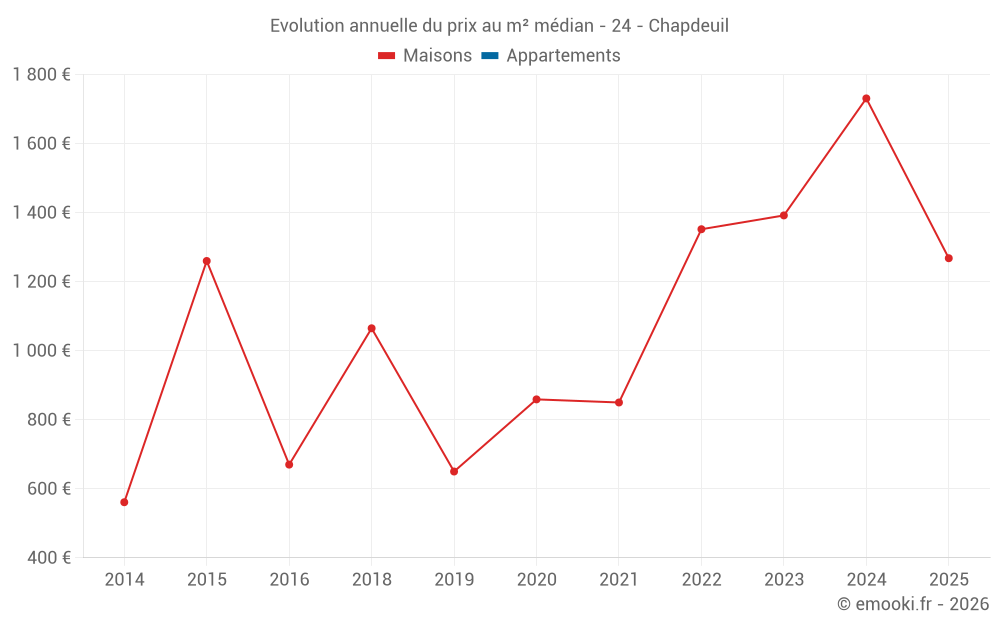 Evolution du prix au m² médian des maisons