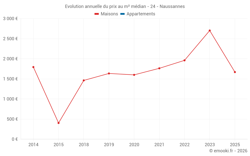 Evolution du prix au m² médian des maisons