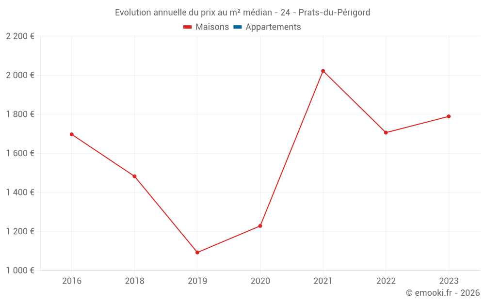Evolution du prix au m² médian des maisons