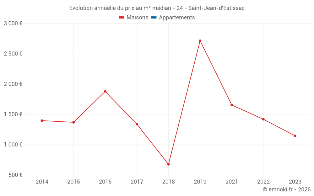 Evolution du prix au m² médian des maisons