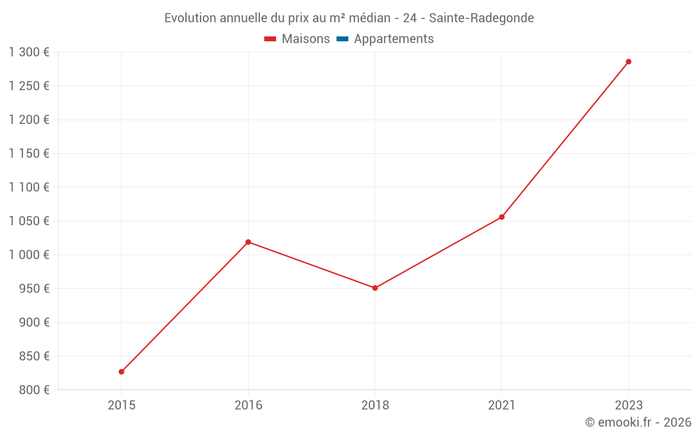 Evolution du prix au m² médian des maisons