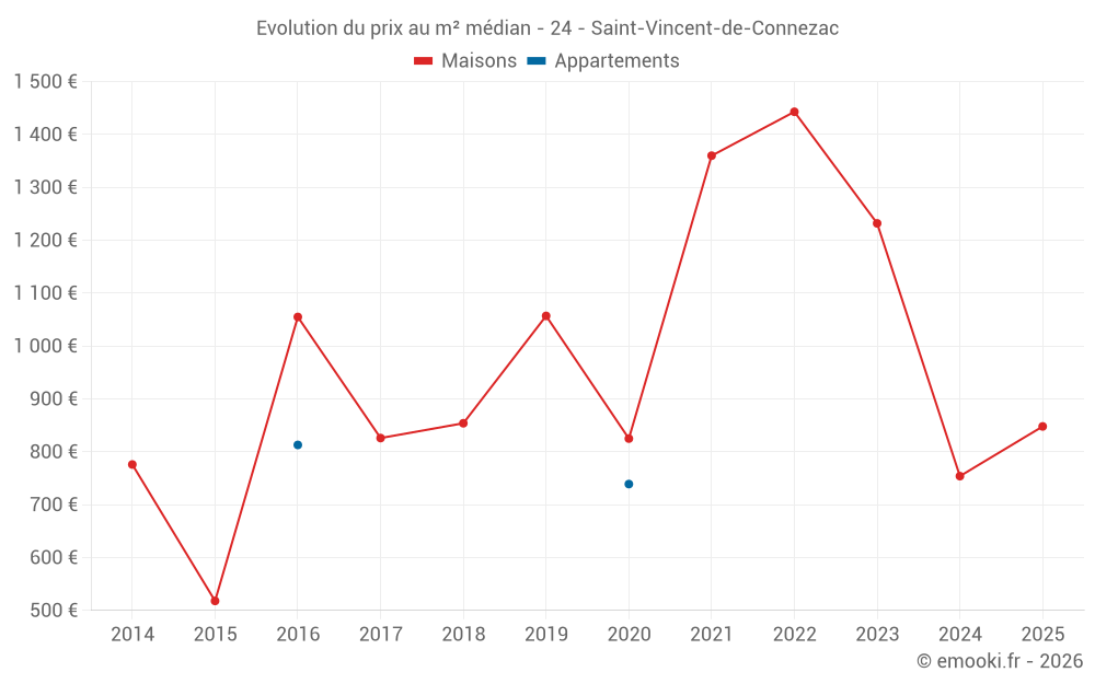 Carte des prix de l'immobilier dans la commune de Saint-Vincent-de-Connezac, choississez une section pour voir les transactions par parcelle.