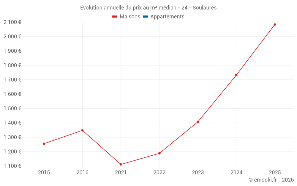 Evolution du prix au m² médian des maisons
