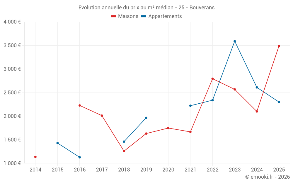 Carte des prix de l'immobilier dans la commune de Bouverans, choississez une section pour voir les transactions par parcelle.