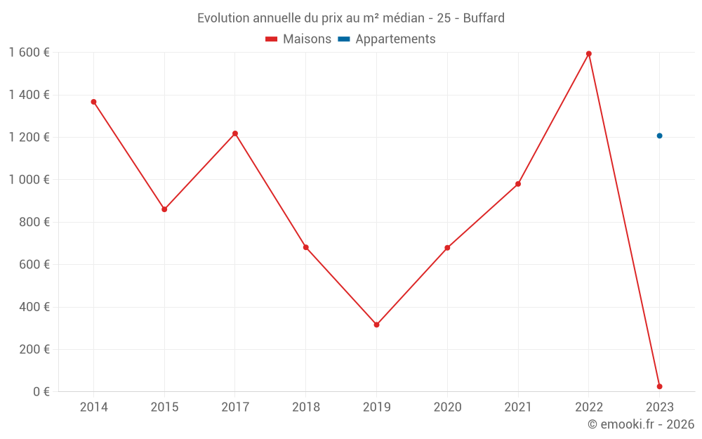Attention, dernière année incomplète. Projections effectuées sur la base des proportions entre semestres de l'année précédente au niveau départemental/national et par catégorie de bien.
