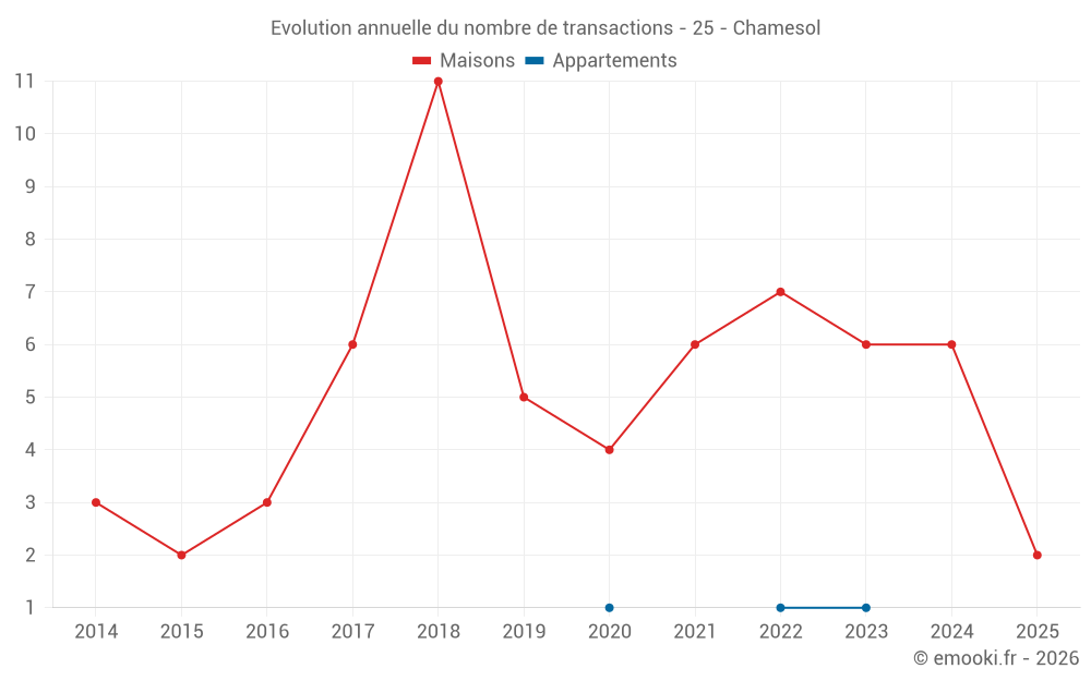 Carte des prix de l'immobilier dans la commune de Chamesol, choississez une section pour voir les transactions par parcelle.