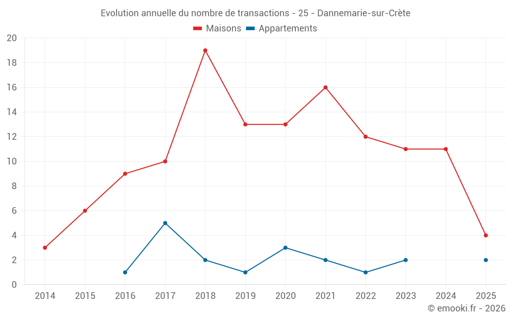Le prix médian sur les 18 transactions de maisons des 24 derniers mois dans la commune de Dannemarie-sur-Crète était de 2 378 € par mètre carré pour une valeur foncière médiane de 275 920 €. Sur cette période 60% des transactions se sont situées entre 1 859 et 2 665 € par mètre carré (du 2ème au 8ème déciles).