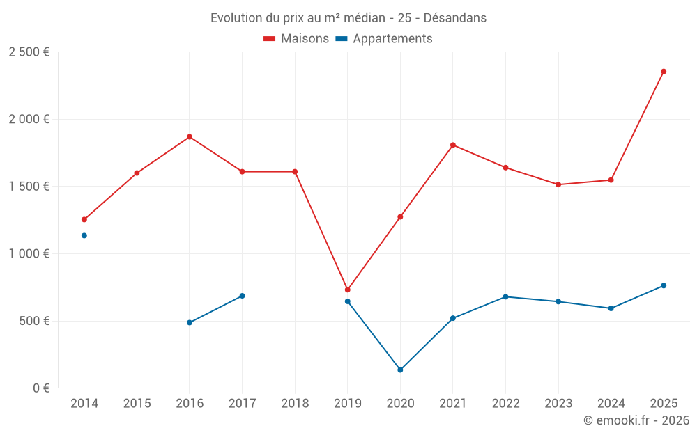 Carte des prix de l'immobilier dans la commune de Désandans, choississez une section pour voir les transactions par parcelle.
