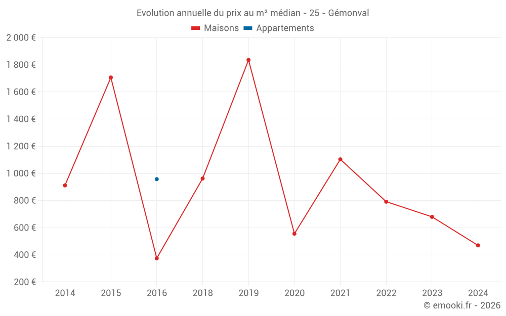 Attention, dernière année incomplète. Projections effectuées sur la base des proportions entre semestres de l'année précédente au niveau départemental/national et par catégorie de bien.