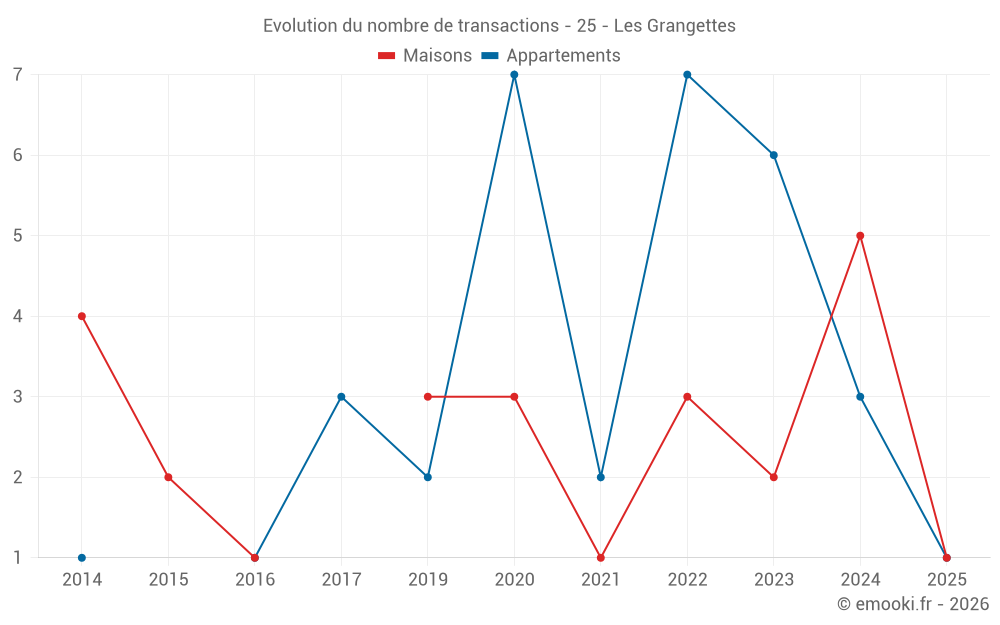 Carte des prix de l'immobilier dans la commune des Grangettes, choississez une section pour voir les transactions par parcelle.
