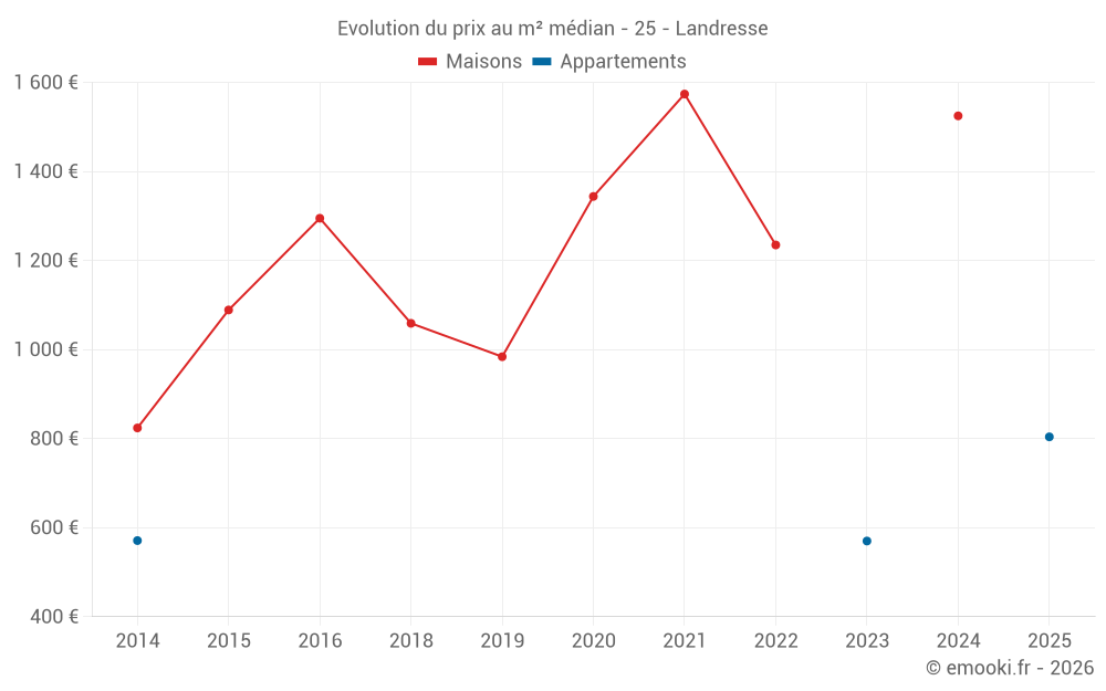 Carte des prix de l'immobilier dans la commune de Landresse, choississez une section pour voir les transactions par parcelle.