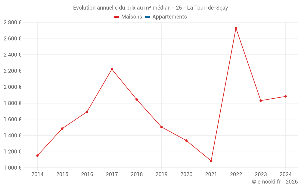 Attention, dernière année incomplète. Projections effectuées sur la base des proportions entre semestres de l'année précédente au niveau départemental/national et par catégorie de bien.