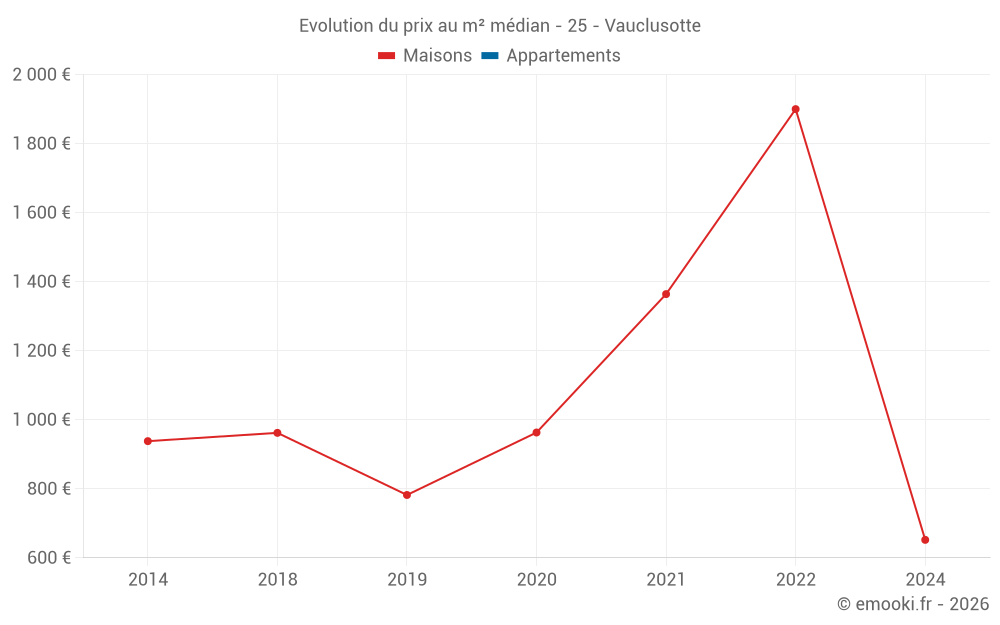 Attention, dernière année incomplète. Projections effectuées sur la base des proportions entre semestres de l'année précédente au niveau départemental/national et par catégorie de bien.
