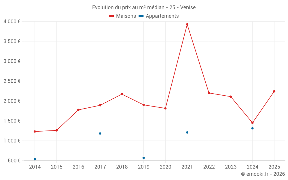 Carte des prix de l'immobilier dans la commune de Venise, choississez une section pour voir les transactions par parcelle.