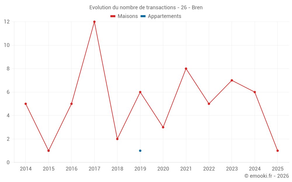 Carte des prix de l'immobilier dans la commune de Bren, choississez une section pour voir les transactions par parcelle.