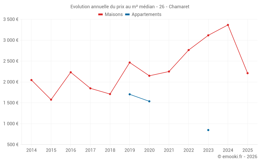 Evolution du prix au m² médian des maisons