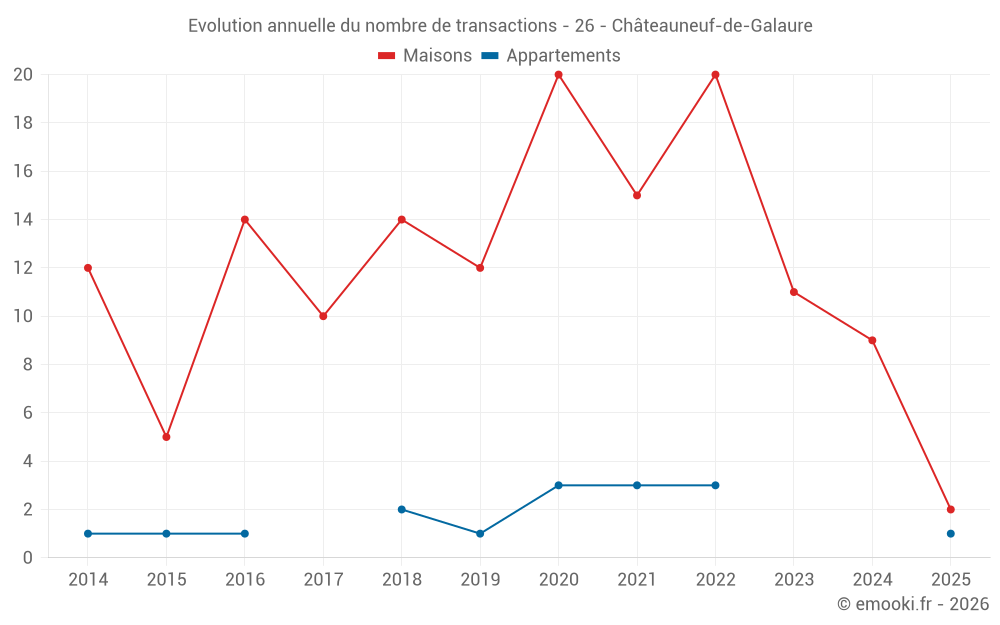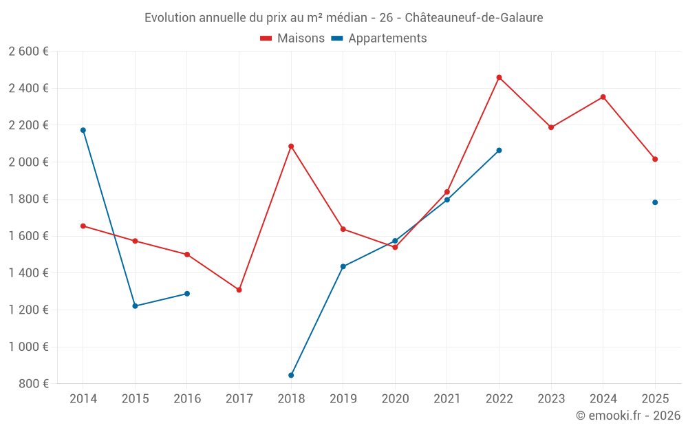 Le prix médian sur les 15 transactions de maisons des 24 derniers mois dans la commune de Châteauneuf-de-Galaure était de 2 353 € par mètre carré pour une valeur foncière médiane de 220 000 €. Sur cette période 60% des transactions se sont situées entre 1 879 et 2 717 € par mètre carré (du 2ème au 8ème déciles).