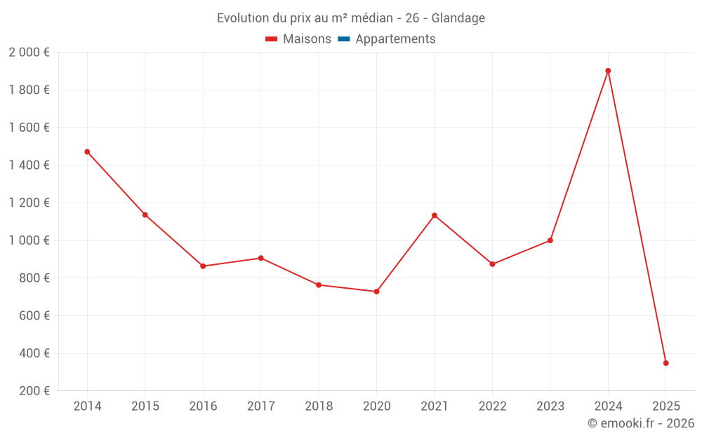 Carte des prix de l'immobilier dans la commune de Glandage, choississez une section pour voir les transactions par parcelle.