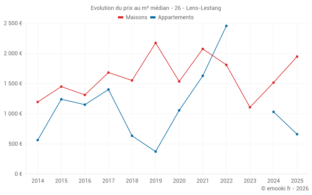 Attention, dernière année incomplète. Projections effectuées sur la base des proportions entre semestres de l'année précédente au niveau départemental/national et par catégorie de bien.