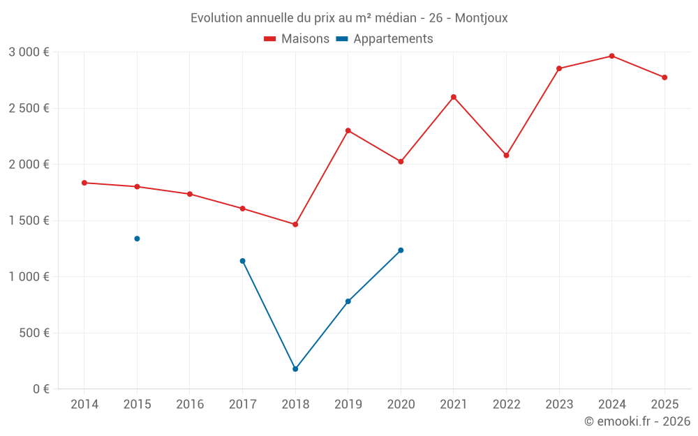 Carte des prix de l'immobilier dans la commune de Montjoux, choississez une section pour voir les transactions par parcelle.