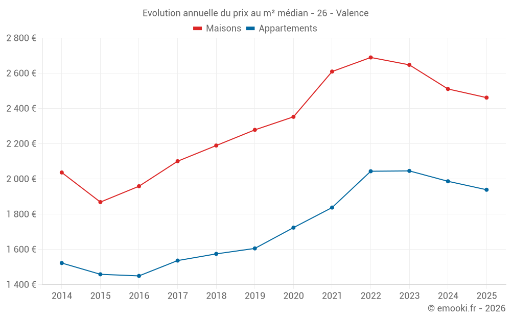Quel est le prix au m2 des maisons à Valence ?