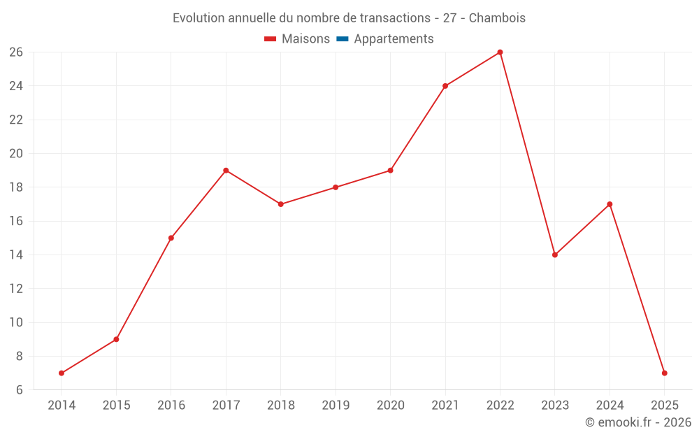 Le prix médian sur les 17 transactions de maisons des 12 derniers mois dans la commune de Chambois était de 1 639 € par mètre carré pour une valeur foncière médiane de 200 000 €. Sur cette période 60% des transactions se sont situées entre 1 459 et 2 110 € par mètre carré (du 2ème au 8ème déciles).